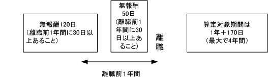 特定理由離職者については、基準日(当該受給資格に係る離職の日)以前1年間に被保険者期間が通算して6か月以上あれば、基準日以前2年間に被保険者期間が通算して12か月以上 なくても、他の要件をみたす限り、基本手当を受給することができる。(基礎) | ||||||||||||||||||||||||||||||||||||||||||||||||||||||||